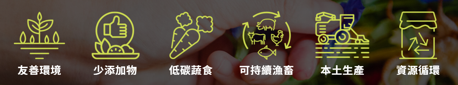 永續食材指南」整合聯合國永續發展目標SDGs、國際先進國家與國內產業經驗,將以「友善環境」、「少添加物」、「低碳蔬食」、「可持續漁畜」、「本土生產」與「資源循環」等永續原則為基礎指標。